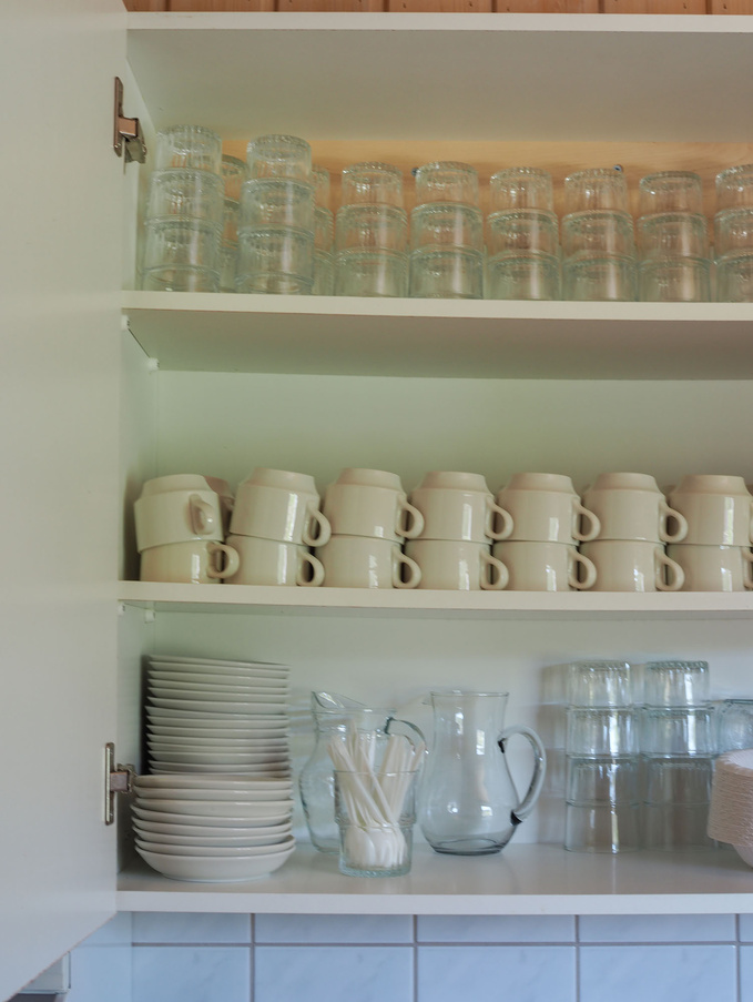 Kahviastiasto noin 50 hengelle (kahvikupit, asetit, juomalasit, pikkulusikat)
